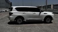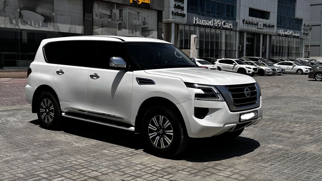 Nissan Patrol SE 2020 (White) Qatar Agency, Mileage 155,000 Km, Full Option: Alloy Wheels, Camera, Sensors, Bluetooth, Leather Seats, Push Start, Sunroof, Cruise Control, 6 Cylinders, 4.0L Engine, 7 Seats, Price BD12,950 (Negotiable). Insurance valid until July 2026. Contact for details.