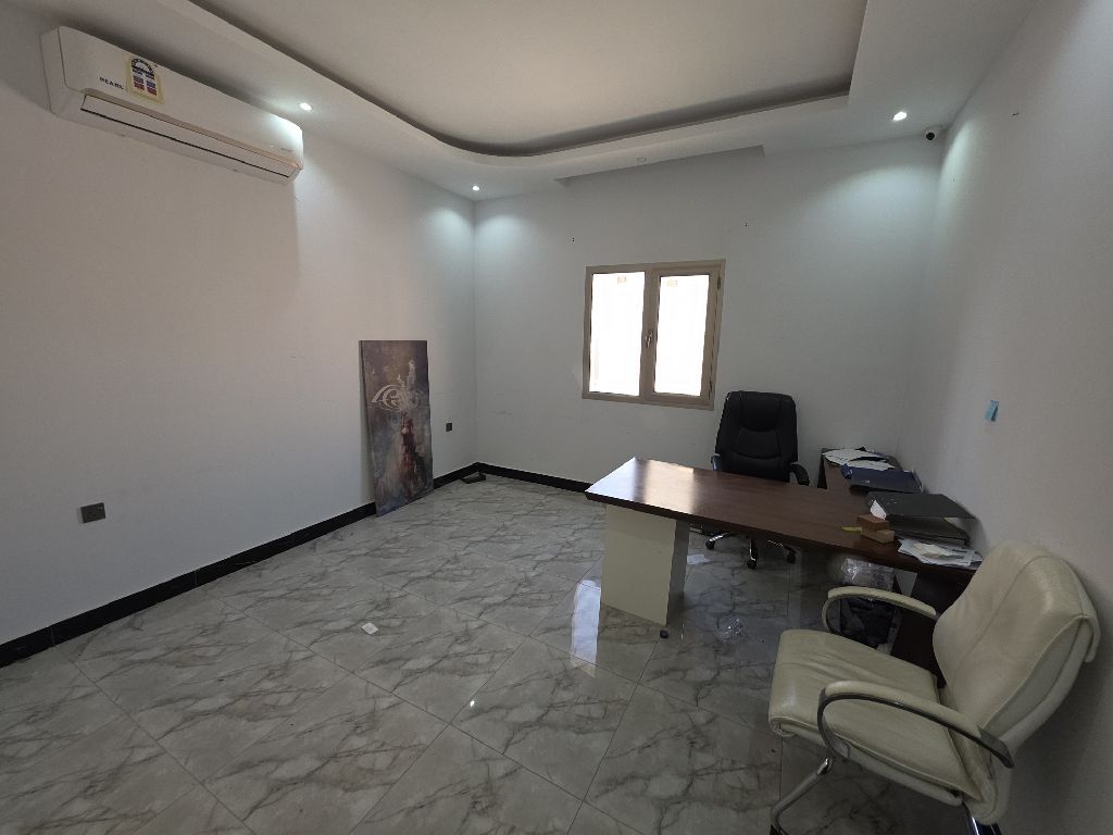 مكتب تجاري للإيجار مع التكييف. يتكون من ثلاث غرف وحمامين وصالة ومطبخ. السعر 275 دينار. الخدمات تشمل بارك ومصعد وحارس أمن. الموقع الحد الجديد