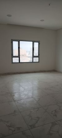 For rent, a new office - style apartment in East Hadd, Bahrain Investment Gate, consisting of two rooms, two bathrooms, a hall, a kitchen, and a storeroom on the second floor with a sea view. It includes an elevator and parking. The monthly rent is 250 dinars excluding electricity and water. It is located in a prime location near Khalifa Port and Bahrain International Airport