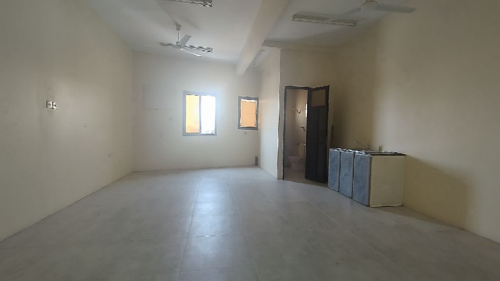 A 1BHK unfurnished commercial flat/office is available for rent in Manama for BD130 per month, excluding Ewa. It features a living area, one room, a closed kitchen, and one bathroom. An elevator is available. Reference number: K280402. Contact for more information.