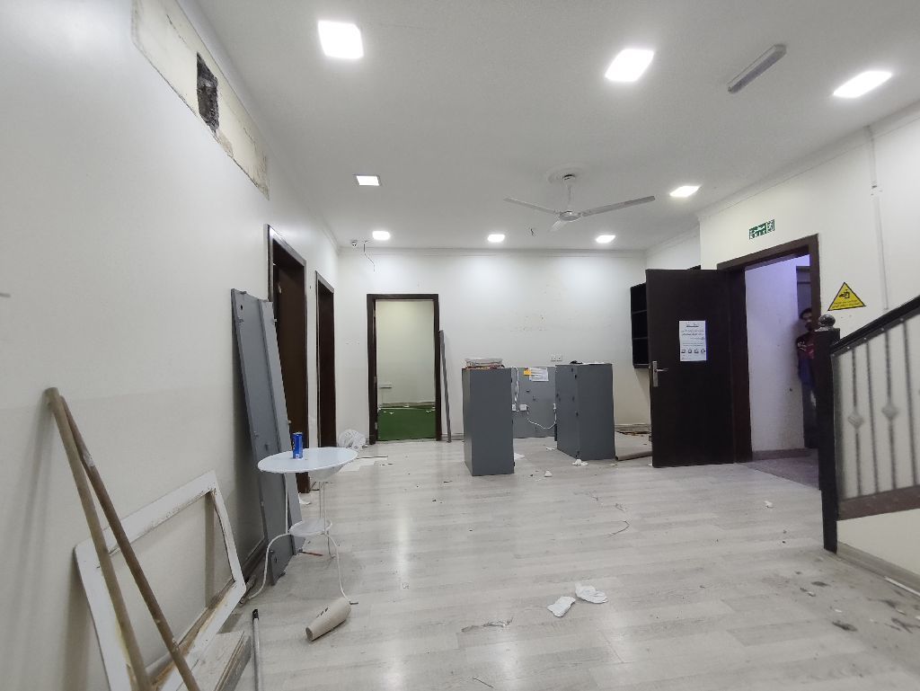 Sitra ground floor 7 BHK duplex commercial flat for rent. BD 350 without EWA. Ground floor living area: 4 rooms, 2 toilets. Upstairs living area: 3 rooms, 2 toilets, and a closed kitchen. Available: multiple car parking. Previously used as a kids training institute. Separate entrance. Reference No: VK 040302. Contact for details.