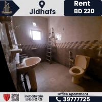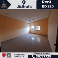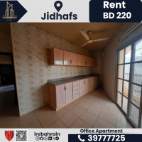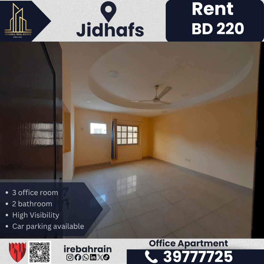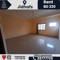 Office for rent - Jidhafs, 220 Bahraini dinars. Location: Jidhafs. 3 spacious offices, two bathrooms, a hall, and a kitchen. Prime location on the main road with available parking. Opposite a supermarket and a gas station. Easy access to Al Budaiyi Road, Sanabis, and Manama. Rent: 220 Bahraini dinars per month. Call or message us.