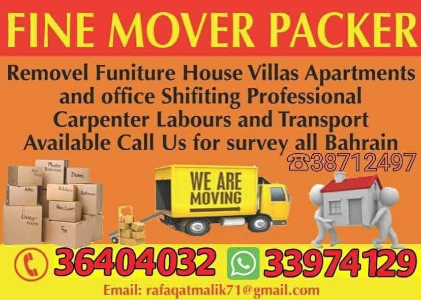 Fine Mover Packer is a professional relocation and shifting service based in Bahrain. The business is managed by Malik and offers a variety of moving and repair services across all areas of the country. Services Offered The company provides comprehensive solutions for residential and commercial needs, including Shifting Moving for houses, villas, apartments, and offices. Furniture Services Pro