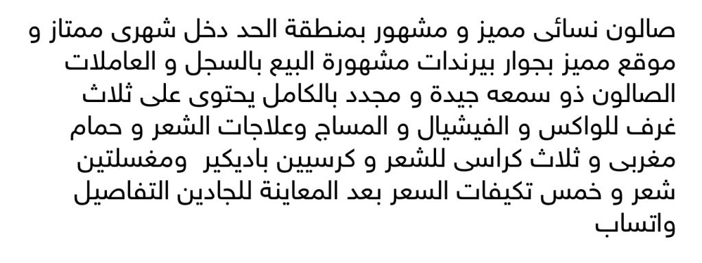 صالون نسائي شهير في منطقة الحد ذو دخل ممتاز وموقع مميز بجوار علامات تجارية مشهورة. البيع يشمل السجل التجاري والعاملات. التفاصيل والمعاينة متاحة.