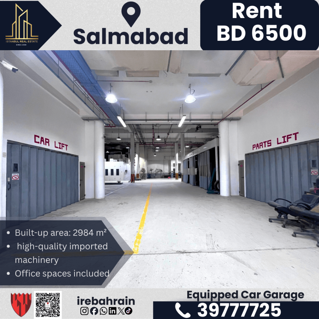 كراج سيارات جاهز للتأجير مع جميع المعدات - سلماباد - 6500 دينار بحريني. موقع متميز في سلماباد، مبنى تجاري من 4 طوابق. مركز خدمة سيارات وورشة عمل فاخرة قيد التشغيل. مصعد ركاب متوفر. رافعتان صناعيتان للسيارات وقطع الغيار. قسم لإصلاح هياكل السيارات ودهانها. ضواغط هواء وآلات مستوردة عالية الجودة. مكاتب متوفرة. سكن للموظفين متوفر. تكييف مركزي. محطة تنقية مياه. مساحة الأرض 1500 متر مربع. المساحة المبنية 2984 متر مربع.