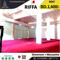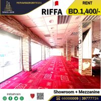 Showroom for rent in Riffa at BD1400. This commercial showroom is located in Riffa, prime location. The total size is 182 SQM, with a ground floor of 91 SQM and a mezzanine of 91 SQM. It includes washroom facilities, car parking, etc. Facing the main road with 4 shutters, it can be used for any commercial activities. Suitable for trading, financial services, etc. The rent is BD1400 per month