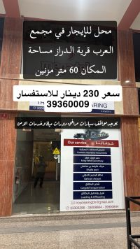 For rent a shop in the Arab Complex, Al - Diraz Village, near Salman City. It includes car parking, restroom facilities, and security service. The shop size is 60 SQM and is equipped with air conditioning