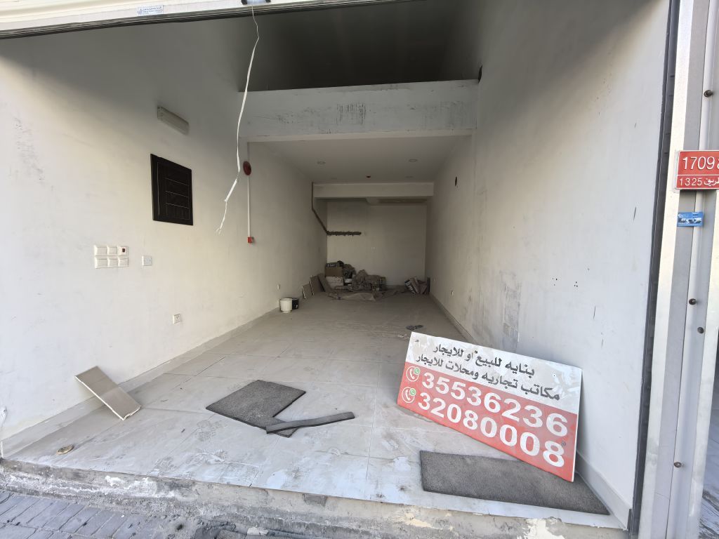 Commercial shops with mezzanine for rent, 4x14 meters, price 280 dinars, located in Al-Hadd Al-Jadeed, suitable for any activity, next to a morning salon.