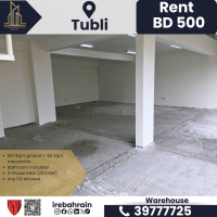 A workshop, warehouse, and shop with a mezzanine floor - Tubli, behind Ansar Gallery. Total area 190 square meters - 100 square meters ground floor + 90 square meters mezzanine floor - suitable for a workshop, warehouse, or shop - two doors - bathroom available - three-phase electricity and water (202 kW) allows for installation of any water cycle - easy access to Salmabad, Tubli main road, and the highway - rent 500 Bahraini dinars per month (excluding electricity and water).