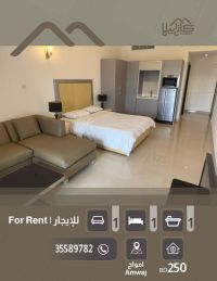 استوديو للإيجار في جزر أمواج - موقع مميز وبناية حديثة. استوديو جميل ومناسب للسكن في منطقة راقية، يتميز بمساحة مريحة، بناية حديثة، مصعد، صالة رياضية، بركة سباحة. الإيجار الشهري 250 دينار شامل الكهرباء (حد 15 دينار).