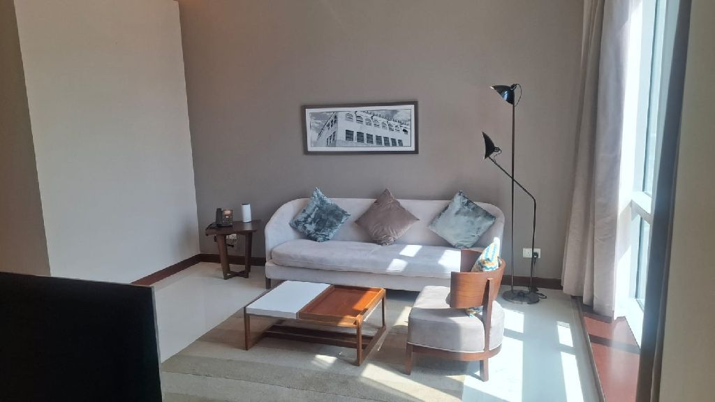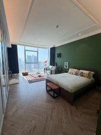 للإيجار: استوديو راقي في ضاحية السيف مقابل السيتي سنتر، برج سيف أفنيو. الخدمات تشمل جيم، مسبح، ساونا، استيم، وإنترنت. سعر الإيجار 360 دينار، مع رسوم كهرباء 15 دينار.