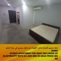 شقة استوديو للإيجار شامل الكهرباء والماء مع السرير والمكيف في عراد الطابق الأرضي السعر 150 دينار بحريني للتواصل