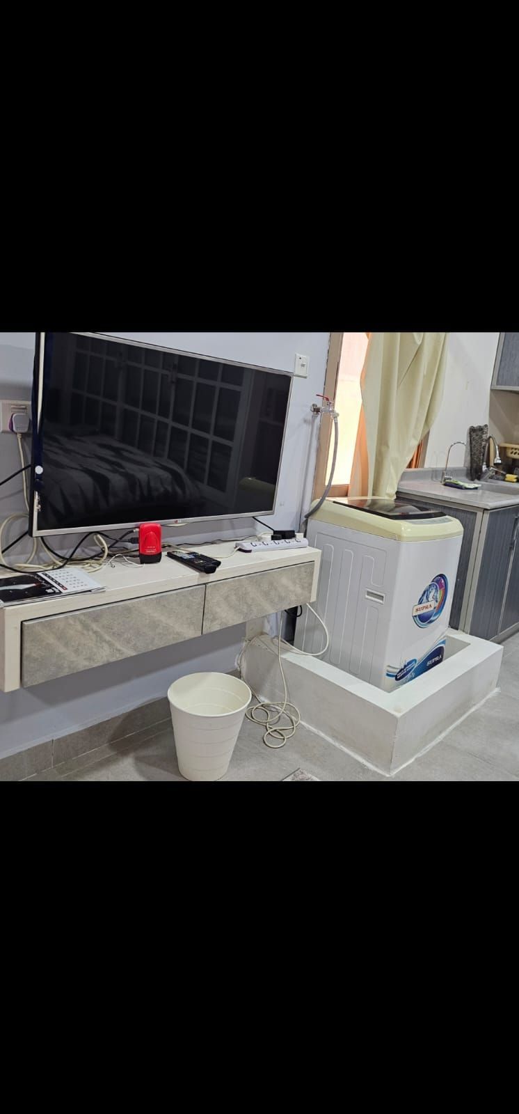 Furnished studio for rent in Sanad, with a large room, bathroom, and kitchen. Only students or employees are required. Price is 180 dinars, including electricity