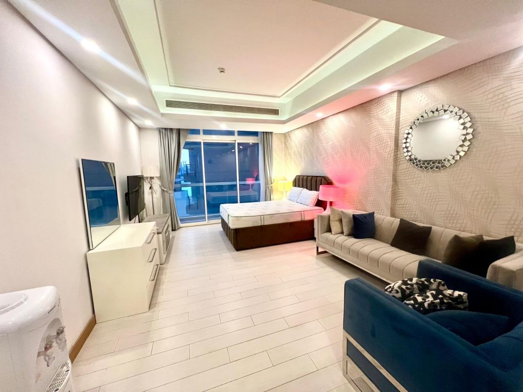 For rent An elegant, fully furnished studio apartment in a luxurious tower in the heart of Juffair. The apartment is fully furnished with the finest furniture, in addition to a balcony with a stunning view. The tower's facilities include 24 - hour reception, parking, a swimming pool, a gym, and a play area. rent is 240 Bahraini dinars, including internet and electricity. For inquiries, please contact
