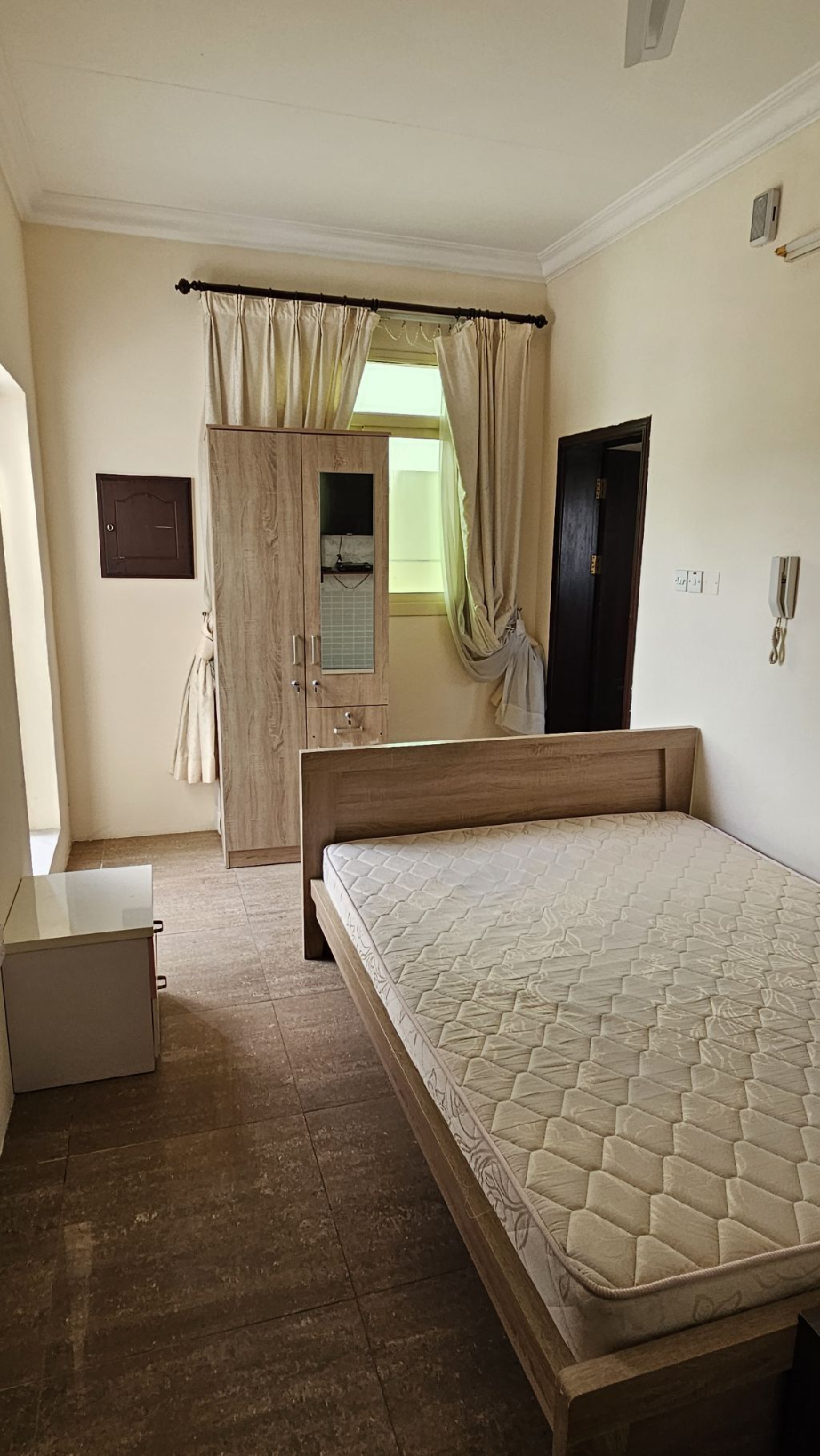 For rent, a furnished studio including electricity in Riffa near Lulu Hypermarket. It consists of one room, a kitchen, a bathroom, and an elevator. The required rent is 150 dinars per month, including electricity.