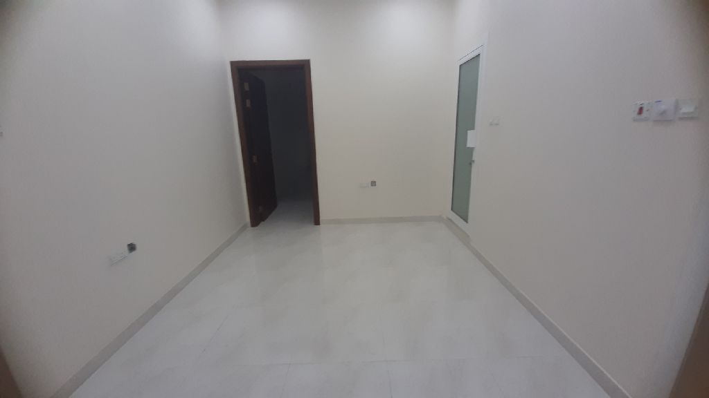 Studios for rent in Tubli, new building, first occupant. Includes a room, bathroom, hall, and closed kitchen. Air-conditioned, with an elevator. Prices range from 220 BD to 250 BD, inclusive of electricity, with a limit of 30 BD.