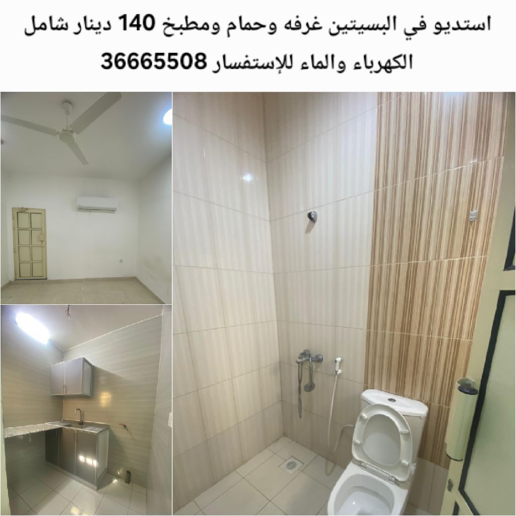 A studio in Al Bseisin contains a room, a bathroom, and a kitchen for 140 dinars, including electricity and water. For inquiries.
