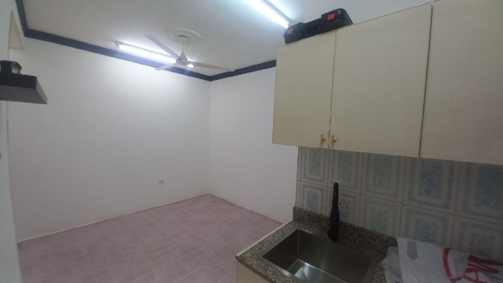 Studio apartment for rent, including electricity, with an air conditioner, on the ground floor in Muharraq, close to the casino. Price is only 90 dinars. For contact