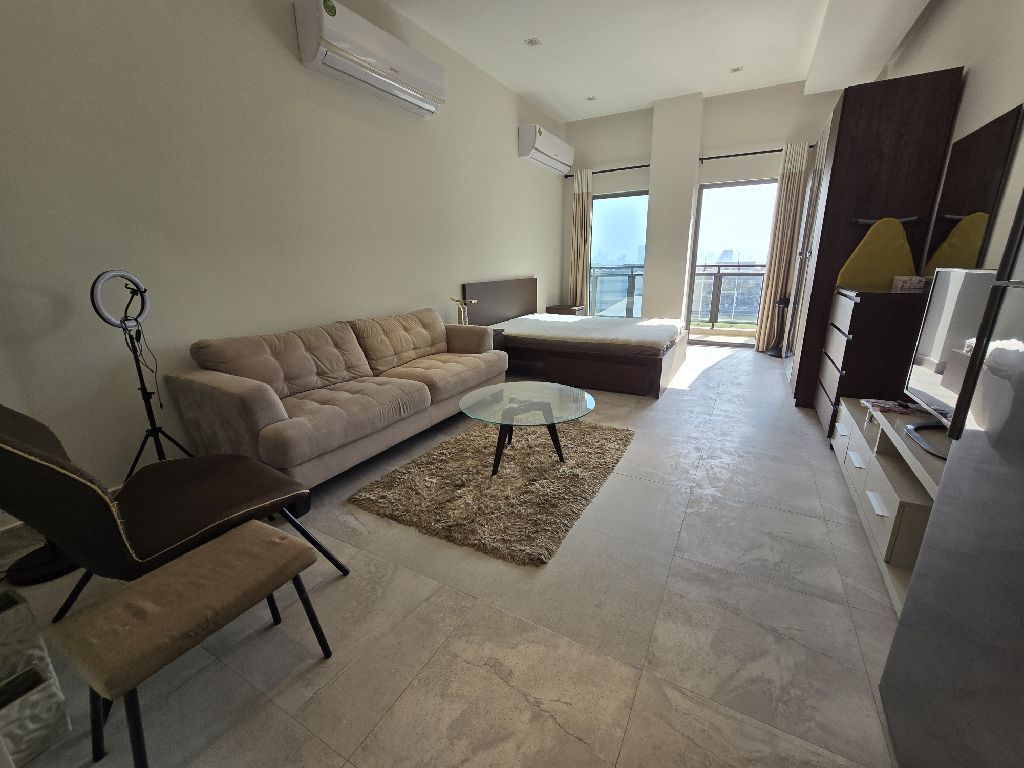 For rent: A furnished studio apartment in Thuraya Suites Tower, Busaiteen, opposite King Hamad Hospital. Electricity is included. The studio consists of a bedroom, kitchen, bathroom, balcony, swimming pool, gym, common hall, and private parking. Price: 250 dinars. For inquiries, note that electricity is limited.