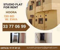 For rent: a studio in Al Hoora, near the Exhibition Street. It includes an air conditioner and curtains. Currently only 130 dinars, inclusive of electricity and water.