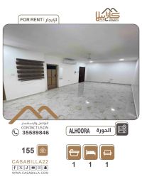 Studio apartment for rent - Hoora, one bedroom, one bathroom, closed kitchen, air conditioning, electricity included without limit. Rent is 155 Bahraini Dinars per month. Prime location in the Hoora area. For more information, please contact privately.