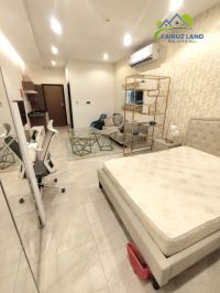 The location is in Al-Busaiteen (near King Hamad Hospital). A fully furnished studio for rent, including electricity and water for 220 dinars, with a 20-dinar deposit. It includes a room, 1 bathroom, a balcony, an open kitchen, full furnishings, a swimming pool, a gym, free internet, an elevator, private parking, 24-hour security guard, and is close to services. For contact.