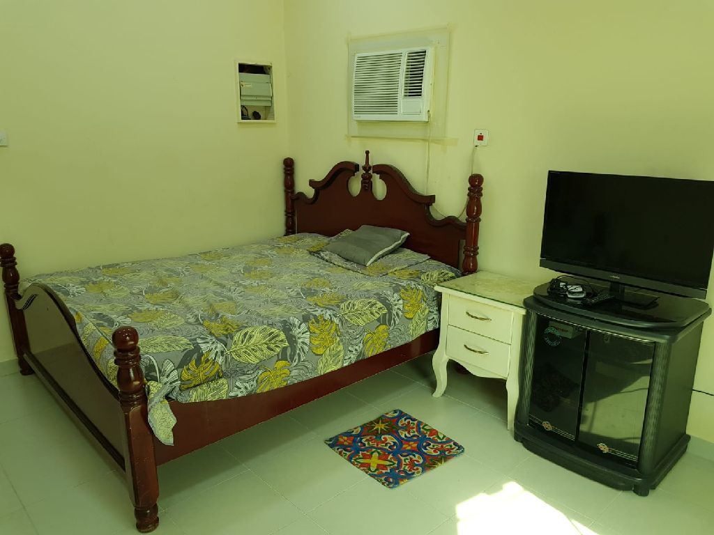 Furnished studio for rent in Isa Town, with a room, bathroom, hall, and kitchen, for foreigners only. Price is 170 dinars including electricity.