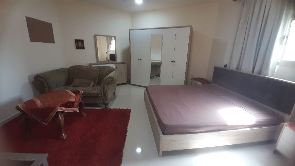 Furnished studio for rent in Jid Ali, new, with a room, bathroom, and kitchen. Price 180 dinars, including electricity, for 30 days.