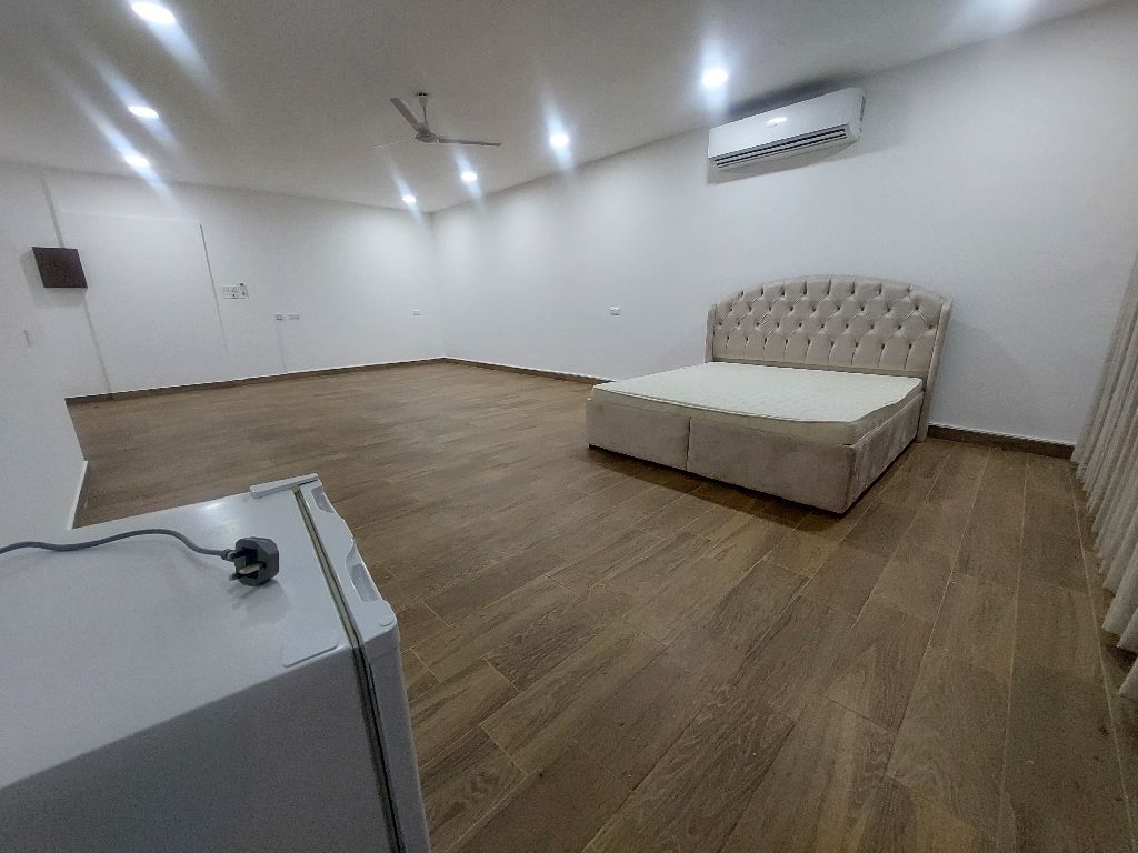 For rent, a fully furnished studio including electricity in Al-Ali. It consists of a very large room, bathroom, kitchen, electric elevator, and car parking. Price required is 200 dinars. For communication.