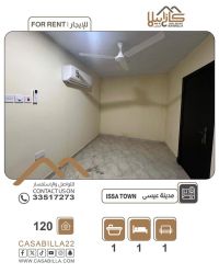 For rent: a studio in Isa Town, near Discovery Roundabout. Details: one room, closed kitchen, bathroom, quiet and secure location, close to all services (shops, restaurants, hospitals, transportation). Rent is 120 dinars, including electricity and water. For contact.
