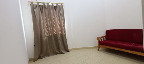 For rent: a studio in Al Hoora, near the Exhibition Street. It includes an air conditioner and curtains. Currently only 130 dinars, inclusive of electricity and water.