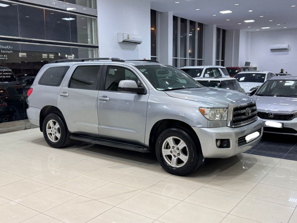 Toyota Sequoia 2015 (Silver) with 421,200 km mileage. Mid Option with alloy wheels, cruise control, camera, Bluetooth, sensors, 8 cylinders, 5.7L engine, 8 seats. Price: 4900 (negotiable). Insurance valid until January 2026. Registration expired in January 2024. Contact for details.