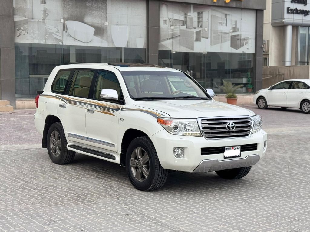 Toyota Land Cruiser VX-R 2014 (White). Mileage: 227,100 km. Full option with alloy wheels, camera, sensors, Bluetooth, sunroof, push start, cruise control. 8 cylinders, 5.7L engine, 7 seats. Price: BD12,500 (negotiable). Insurance valid until March 2026. Contact for details.