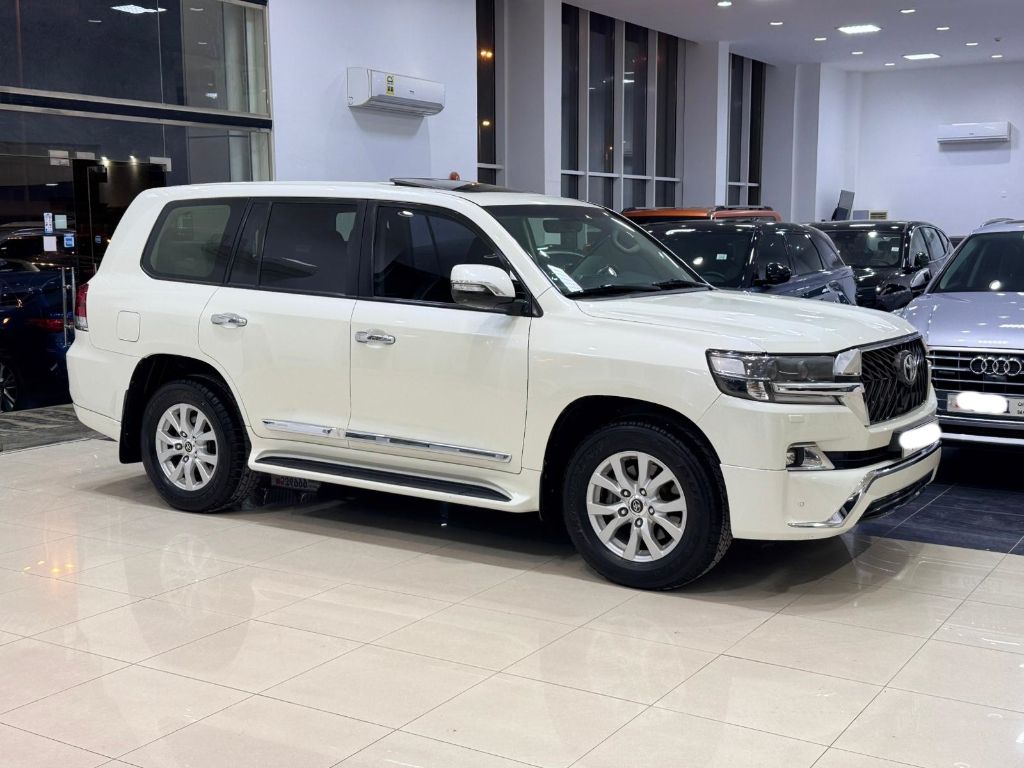 Toyota Land Cruiser GXR - 2017 (Pearl White). Mileage: 171,200 km. Full options including alloy wheels, Bluetooth, cruise control, push start, sensors, sunroof, leather seats, camera, and more. 8 cylinders, 4.6L engine, 8 seats. Price: BD 15,900 (negotiable). Insurance valid until November 26. Contact for details.