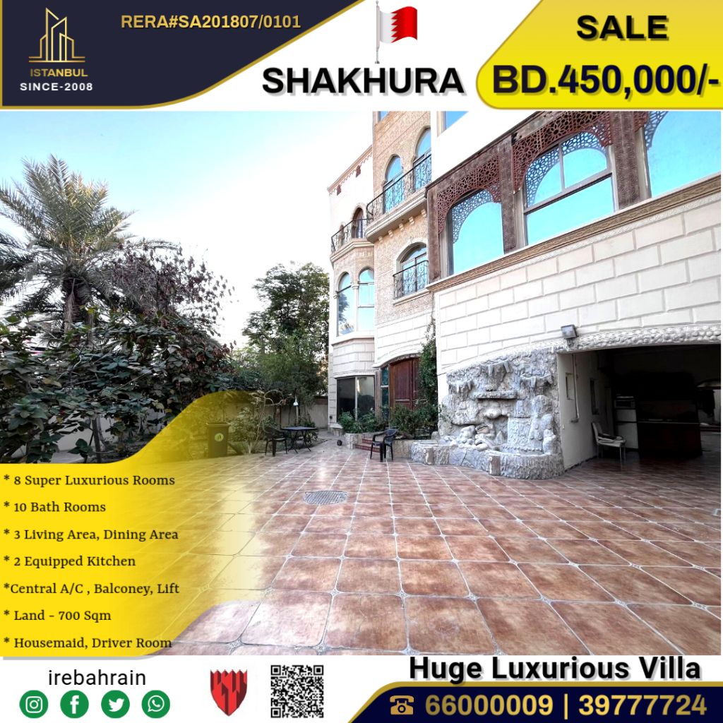 فيلا ضخمة فاخرة للبيع في الشاخورة، سار - 450000 دينار بحريني. عش بأناقة وراحة مع هذه الفيلا الفاخرة الضخمة المكونة من 3 طوابق والتي تقع في منطقة الشاخورة الهادئة، سار مثالي للعائلات التي تبحث عن المساحة والأناقة والراحة. مميزات العقار مساحة الأرض 700 متر مربع (قطعة أرض ناصية) 3 طوابق، الطابق الأرضي يحتوي على منطقة معيشة وتناول طعام واسعة، غرفة نوم مع حمام داخلي ومنطقة لتبديل الملابس، ومطبخ مجهز