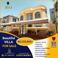 فيلا جميلة للبيع في الزنج بالقرب من مستشفى الكندي بسعر 220000 دينار بحريني. ميزات الفيلا تشمل 5 غرف نوم، 6 حمامات، منطقة معيشة بالاضافة الى منطقة سفرة، مطبخ واسع، غرفة للعاملة المنزلية، غرفة تخزين، منطقة غسيل ملابس، مساحة لوقوف 4 سيارات، ومساحة أرض تبلغ 320 متر مربع. نقدم أقل سعر بيع بقيمة 220000 دينار بحريني فقط. سهولة الوصول الى السلمانية، السقية، توبلي، سلماباد، مدينة عيسى، المنامة، السيف، والجسر