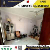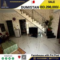 مزرعة مع مسبح للبيع في دمستان، بسعر 298000 دينار بحريني. تتكون هذه المزرعة من مجلس، غرف نوم، حمامات، مطبخ مجهز، مخزن، مسبح، وغيرها. مساحة الأرض 1630.7 مترا مربعا، منطقة سكنية. سعرها 298000 دينار بحريني فقط. قريبة من الهملة، الجسرة، الجنبية، بتلكو، وغيرها