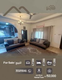 للبيع فيلا في موقع مميز تقع على شارع وممرين في منطقة هادئة ومثالية للسكن. مدينة حمد - الدوار 5. السعر المطلوب 150,000 دينار. مساحة الأرض 310 متر مربع. مساحة البناء الطابق الأرضي يتكون من كراج لسيارتين، حديقة، صالتين، مطبخ خارجي، مطبخ داخلي مفتوح على الصالة، غرفة طعام، مخزن، ودورتين مياه. الطابق الأول: شقة جديدة مكونة من غرفتين، دورتين مياه، صالتين، مطبخ، اضافات مميزة، 3 غرف نوم، 3 حمامات، وملحق عاملة منزلية غرفة + دورة.