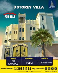 للبيع: فيلا ضخمة مكونة من 3 طوابق في توبلي، بالقرب من الطريق السريع، بسعر 420,000 دينار بحريني. الميزات: 12 غرفة نوم - 18 حمام - 3 غرف معيشة + مجلس - 4 مطابخ واسعة - 3 مناطق لتناول الطعام - 4 مخازن - 3 غرف غسيل - غرفة خادمة مع حمام - غرفة سائق مع حمام - 4 مواقف سيارات مغطاة. تقع هذه الفيلا في توبلي، موقع متميز بالقرب من الطريق السريع. مساحة الأرض - 812.6 متر مربع. نحن نقدم أقل سعر بيع بقيمة 420,000 دينار.