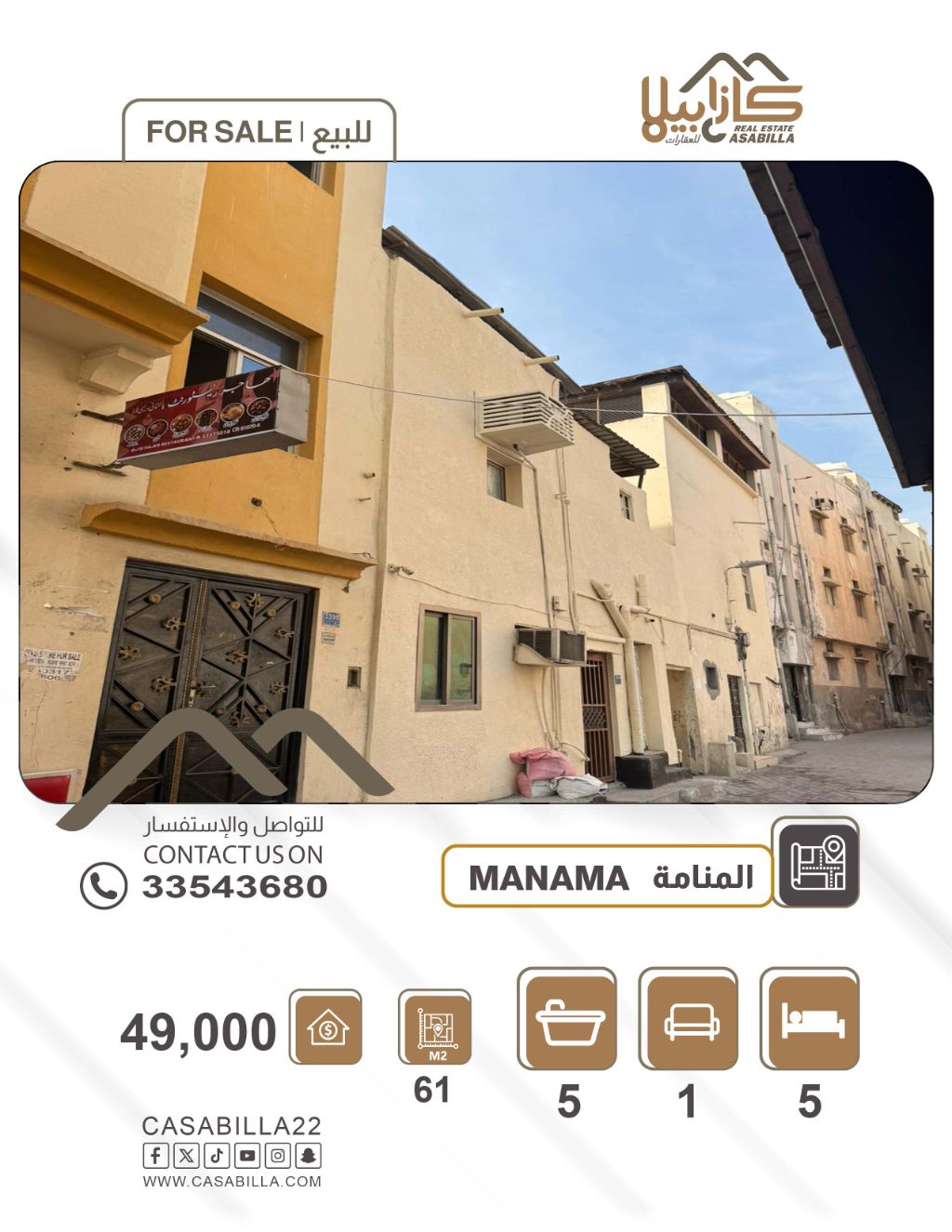 للبيع مبنى استثماري في المنامة - وسط المنامة موقع استراتيجي وحيوي فرصة مميزة لامتلاك عقار استثماري في قلب المنامة، على شارع نشط وقريب من جميع الخدمات والمرافق التجارية، مناسب للاستثمار طويل المدى. تفاصيل العقار مساحة الأرض 61 متر مربع - الدخل الشهري الحالي 419 دينار بحريني - عداد كهرباء 1 - عداد ماء 1 - نوع العقار منزل يتكون المبنى من 5 غرف نوم - 2 مطبخ - 2 حمام تم إجراء صيانة كاملة للمنزل