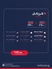 شركة أبراج أيفل العقارية تقدم فيلا جديدة للبيع في كرزكان. مساحة الأرض 218 متر مربع، ومساحة البناء 309 متر مربع. تفاصيل الفيلا تشمل: الطابق الأرضي: موقف لسيارتين، مطبخ كبير، مخزن، صالة كبيرة، حمام للضيوف، وغرفة مع حمام. الطابق الأول: غرفة ماستر مع حمام وغرفتين مع حمامات. الطابق الثاني: غرفة للعاملة المنزلية مع حمام. السعر المطلوب 145,000 دينار بحريني. للتواصل: محمود صلاح، eiffeltowers.re، وسيط معتمد من قبل مؤسسة التنظيم.