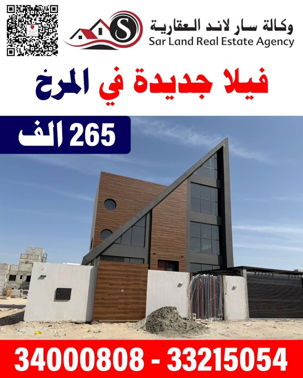 فيلا جديدة في المرخ لأصحاب الذوق الراقي والتصميم الهندسي الفريد من نوعه بسعر 265 ألف.