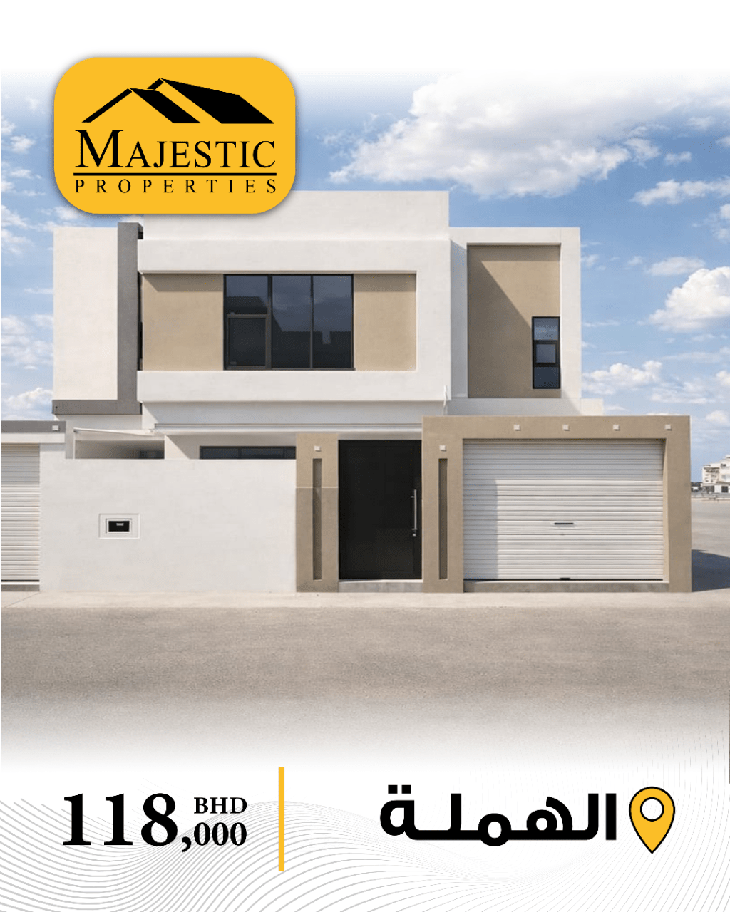 للبيع بيت جديد في الهملة يتكون من 4 غرف نوم، صالة، مطبخ، غرفة طعام، 5 حمامات، غرفة غسيل، كراج لسيارتين. مساحة الأرض: 167 متر مربع. مساحة البناء: 265.6 متر مربع. السعر المطلوب: 118 ألف دينار بحريني. المرجع: MPM3430.