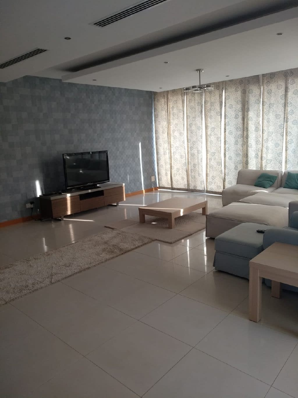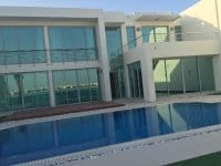 For sale, a fully furnished two - story villa in Durrat Al Bahrain, Tala, with a direct sea view, super deluxe finishes, very elegant, close to all services and commercial complexes. It consists of 4 large bedrooms, a very large living room, a guest room, two kitchens (internal and external) a maid's room, a storage room, car parking spaces, all services and facilities are available, a swimming pool