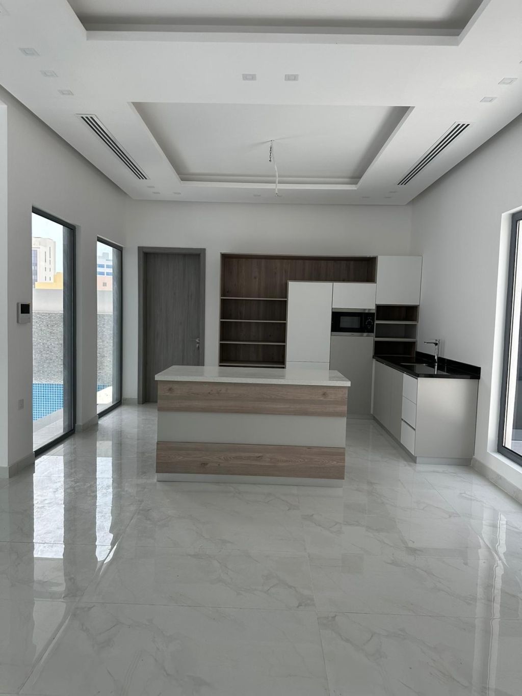 For sale, a new villa in Saraya 2, Bu Quwah, with a land area of 330 square meters and a built-up area of 530 square meters. It consists of 4 bedrooms with bathrooms, an open living room, 2 kitchens, a garage for two cars, and a swimming pool. For more photos, please contact. Special price for serious buyers: 230,000 Bahraini dinars.