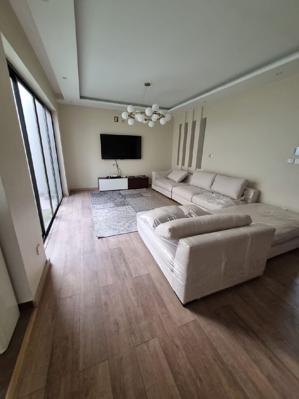 For sale, a villa in Diyar Al-Muharraq, land area 185 SQM, building area 263.24 SQM, fully furnished, consisting of three bedrooms, of course, the master bedroom has an expansion above the garage, four bathrooms, two living rooms, an internal and external kitchen, a garage for two cars, and a maid's room with a bathroom. Price BD135000, negotiable. Licensed real estate broker, license number B202402