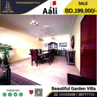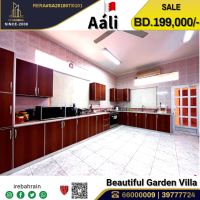 A beautiful villa with a garden for sale in A'Ali - 199000 Bahraini dinars only. A golden opportunity to own a fully furnished villa in one of the quietest and most upscale residential areas of A'Ali. The Villa consists of 3 floors with a Smart design and spacious areas, perfect for large families. Although it is a relatively old villa, it is well - maintained and equipped with all amenities. Property