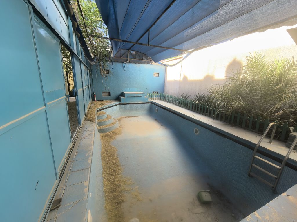 Villa for sale in Al Qafool neighborhood. Area 434 meters. Price 175000 negotiable, consisting of a very large garden, swimming pool, maid's room, laundry room, bathroom, family living room, and kitchen, four large rooms, three bathrooms, the last floor includes a room, kitchen, and bathroom. Location Al Qafool near the central market Ramz. For inquiries, contact