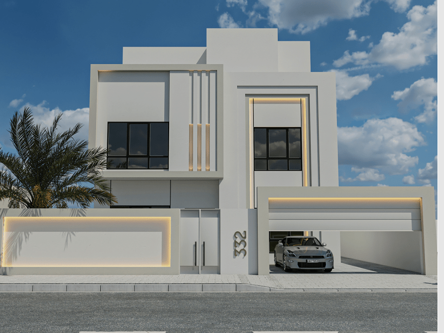 Dominiz real estate offers a luxurious villa for sale in the Sadad area. The land area is 309 SQM, and the built - up area is 323 SQM. The ground floor includes a room with a bathroom, a spacious hall with a bathroom, a kitchen, and a garage for two cars. The first floor has three master bedrooms. The second floor includes a maid's room with a bathroom and a laundry room, with preparations