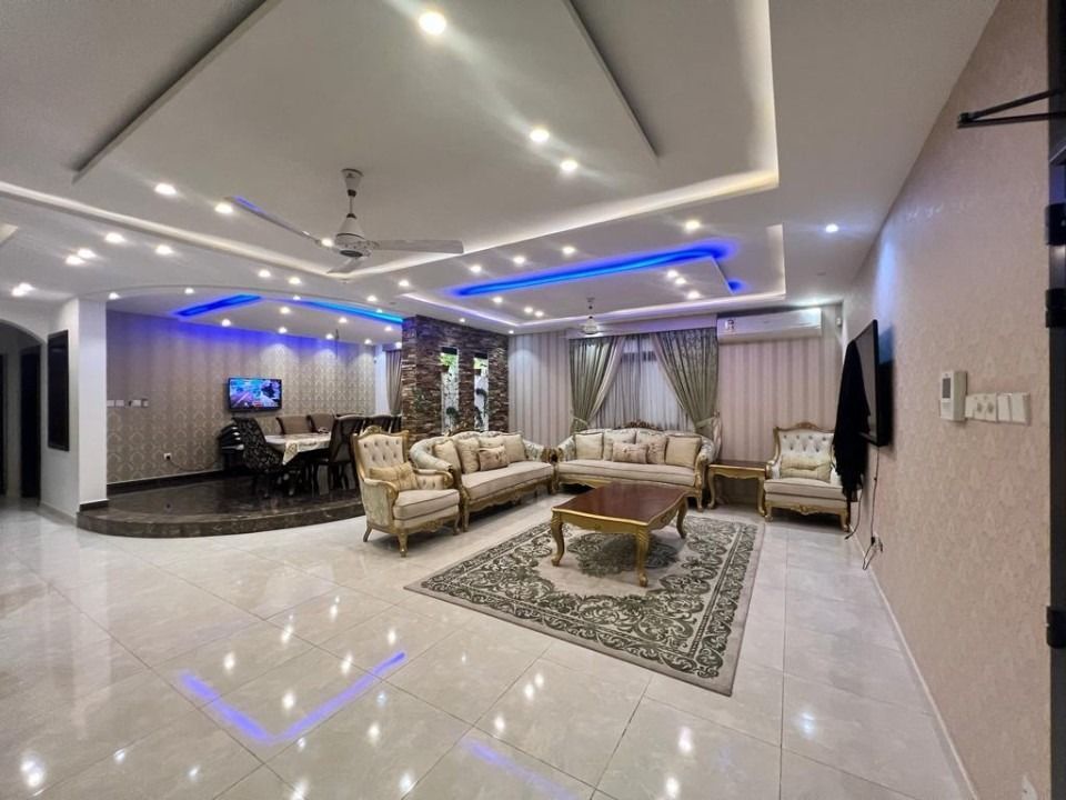 For sale, a luxurious and new villa in Hamad Town - Second Roundabout, consisting of Ground floor large living room, dining room, two bathrooms, living room, bedroom, indoor and outdoor kitchen, storage room. First floor 4 spacious rooms with bathrooms and a study room, a small living room. Second floor maid's room with bathroom, laundry room, storage room. Land area 347 SQM. Built area 514 SQM